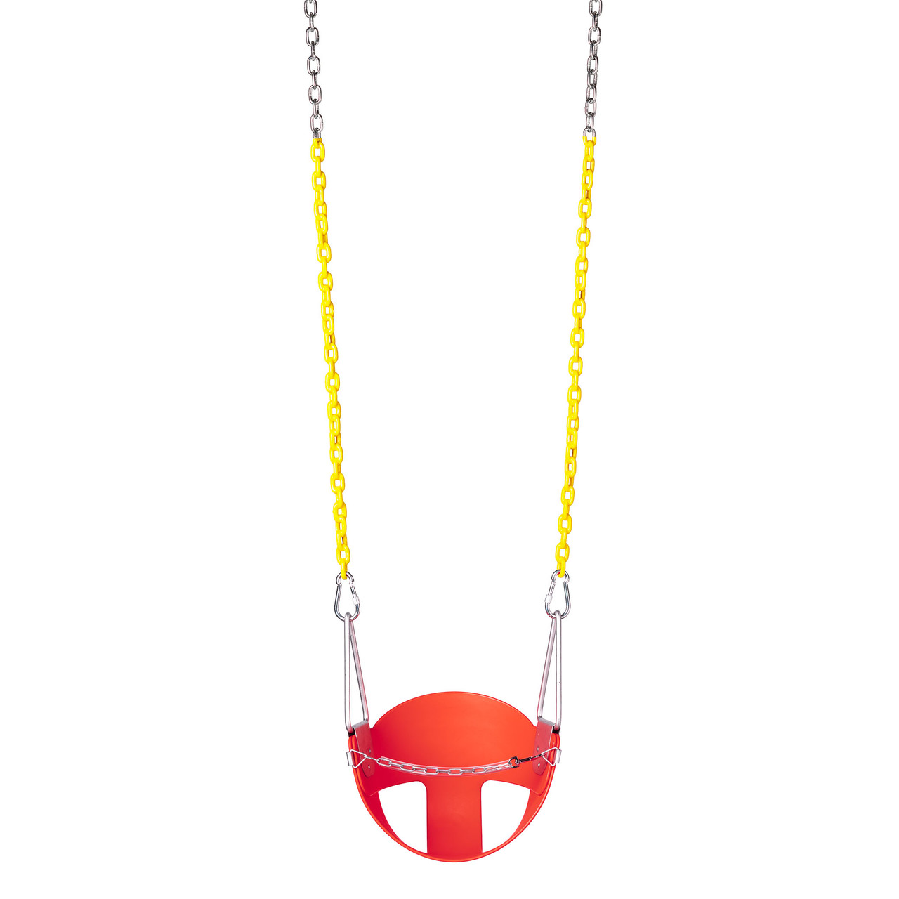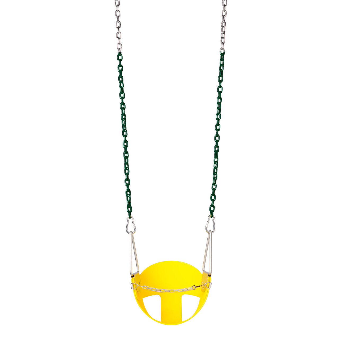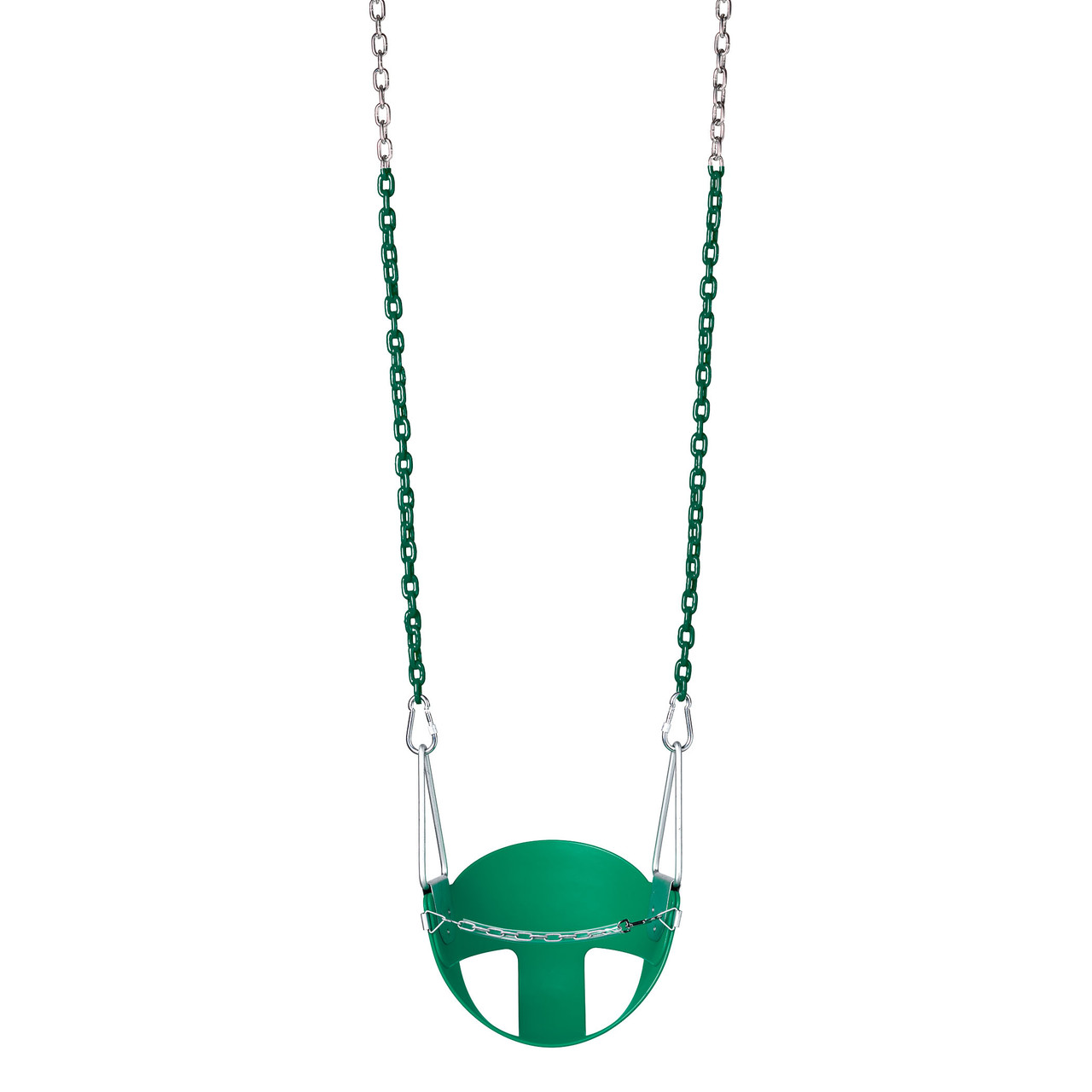 Your toddler can enjoy swinging with added comfort and back support with our Half Bucket Swing Seat! This seat is made of highly durable copolymer plastic and includes our 5'6" Plastisol Coated Chain. The chain is coated in plastisol for soft gripping and reduced pinching. We also include the S-11 Front Safety Chain for added security while your child is swinging.