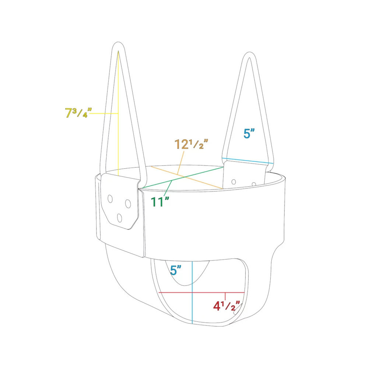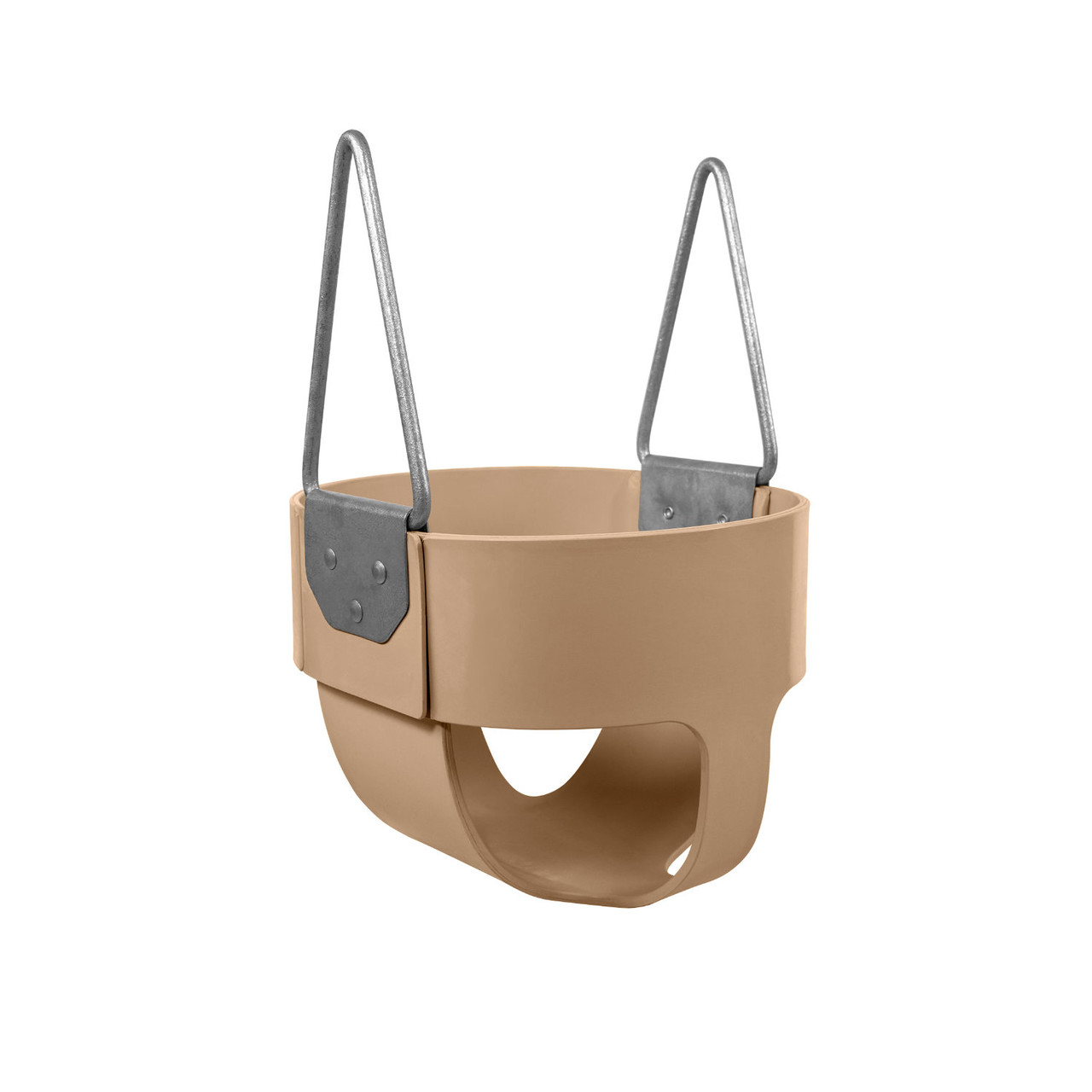 A fully enclosed infant seat prevents small children from falling out. Vandal proof, it is constructed of EPDM rubber with a highly durable one piece steel insert and heavy duty rust resistant hardware. The one-piece insert makes this swing much stronger and durable vs other swings, making it an excellent choice for parks and schools.