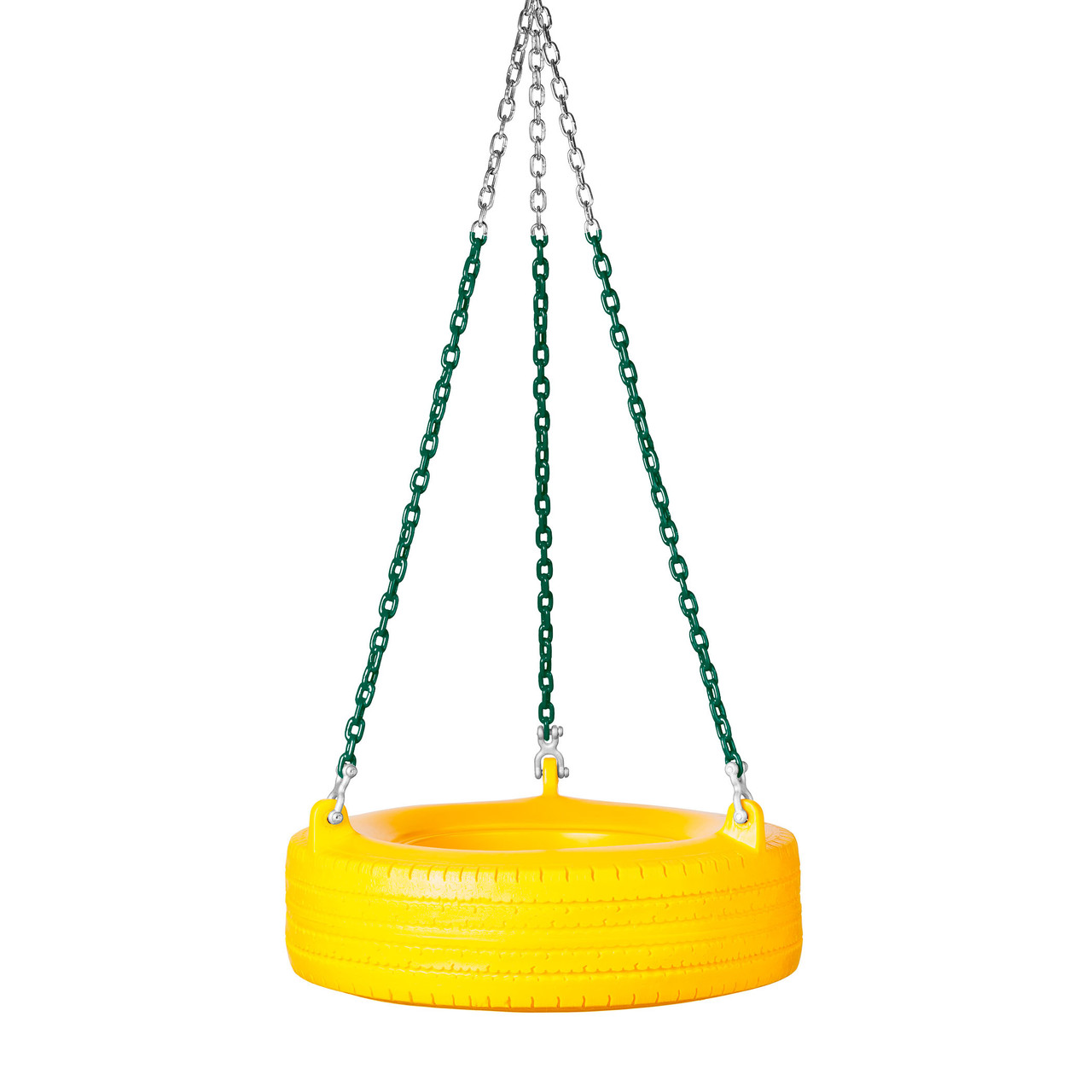 Low-maintenance high-fun comes to tire swings with this tough rotomolded design. This tire swing combines the PT-02 Rotomolded Plastic Tire Swing with our commercial grade swing chain which is partially coated for a soft grip and reduced pinching. These chains easily attach to the tire using the included Double Clevises.